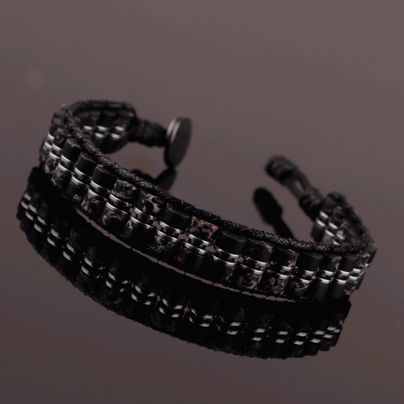 Bu özel tasarım bileklik, nadir bulunan Varisit'in huzur verici enerjisi ile Hematit'in topraklayıcı korumasını tek bir aksesuarda birleştirir.